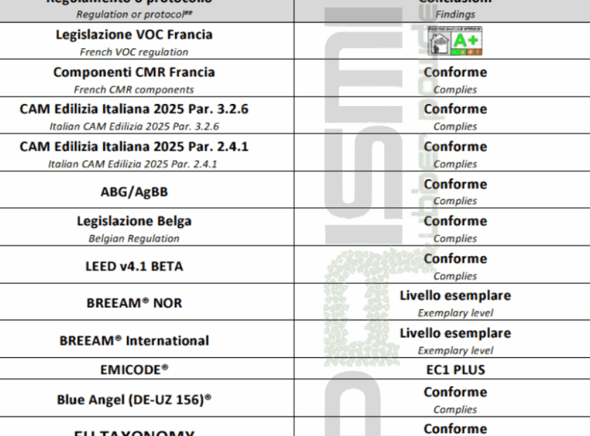 Sí, probada UNI EN ISO 10140-3:2021, con conformidad para regulaciones europeas de aislamiento acústico